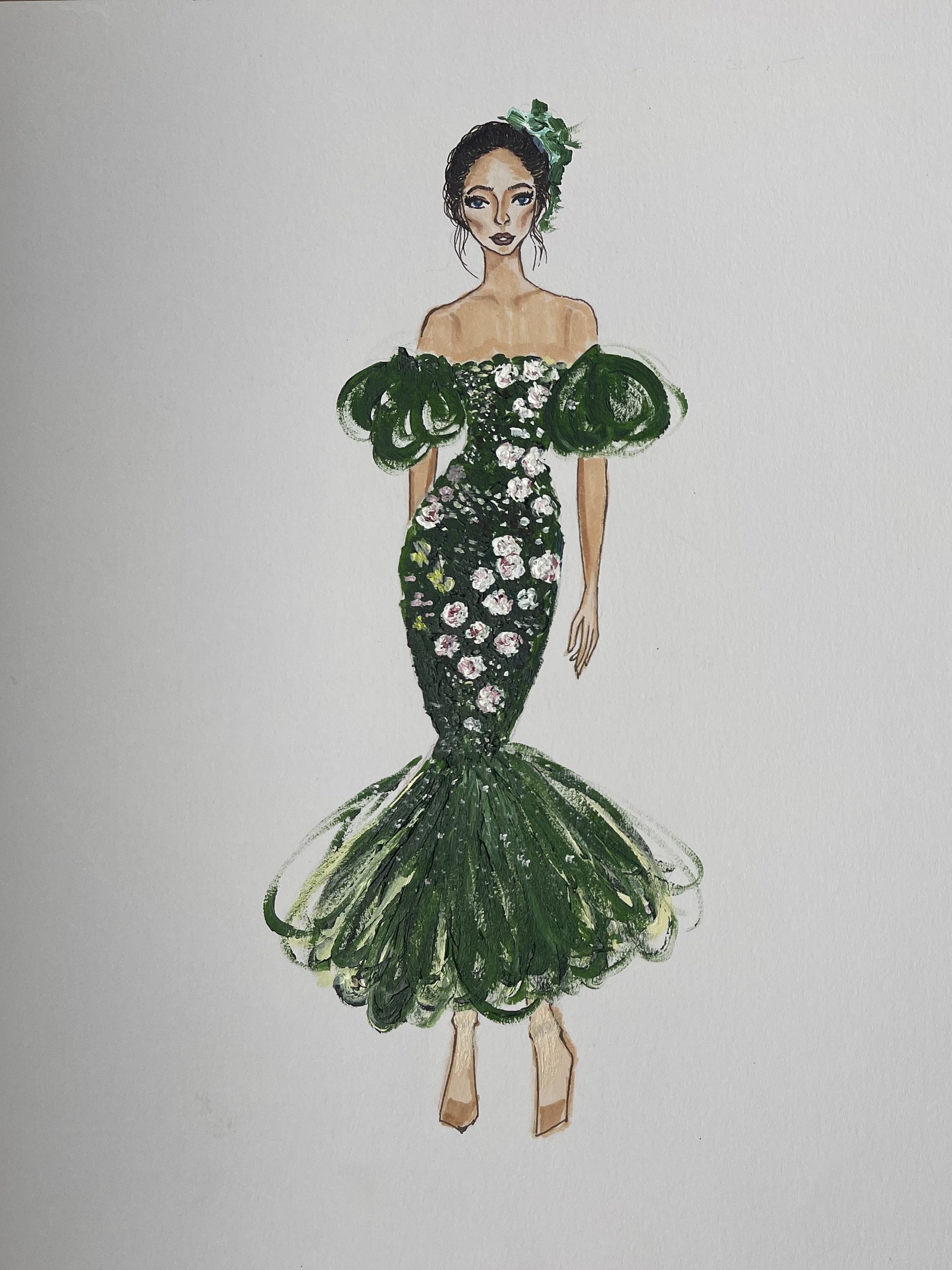 A vision of emerald grandeur, floral enchantment, and timeless couture magic.