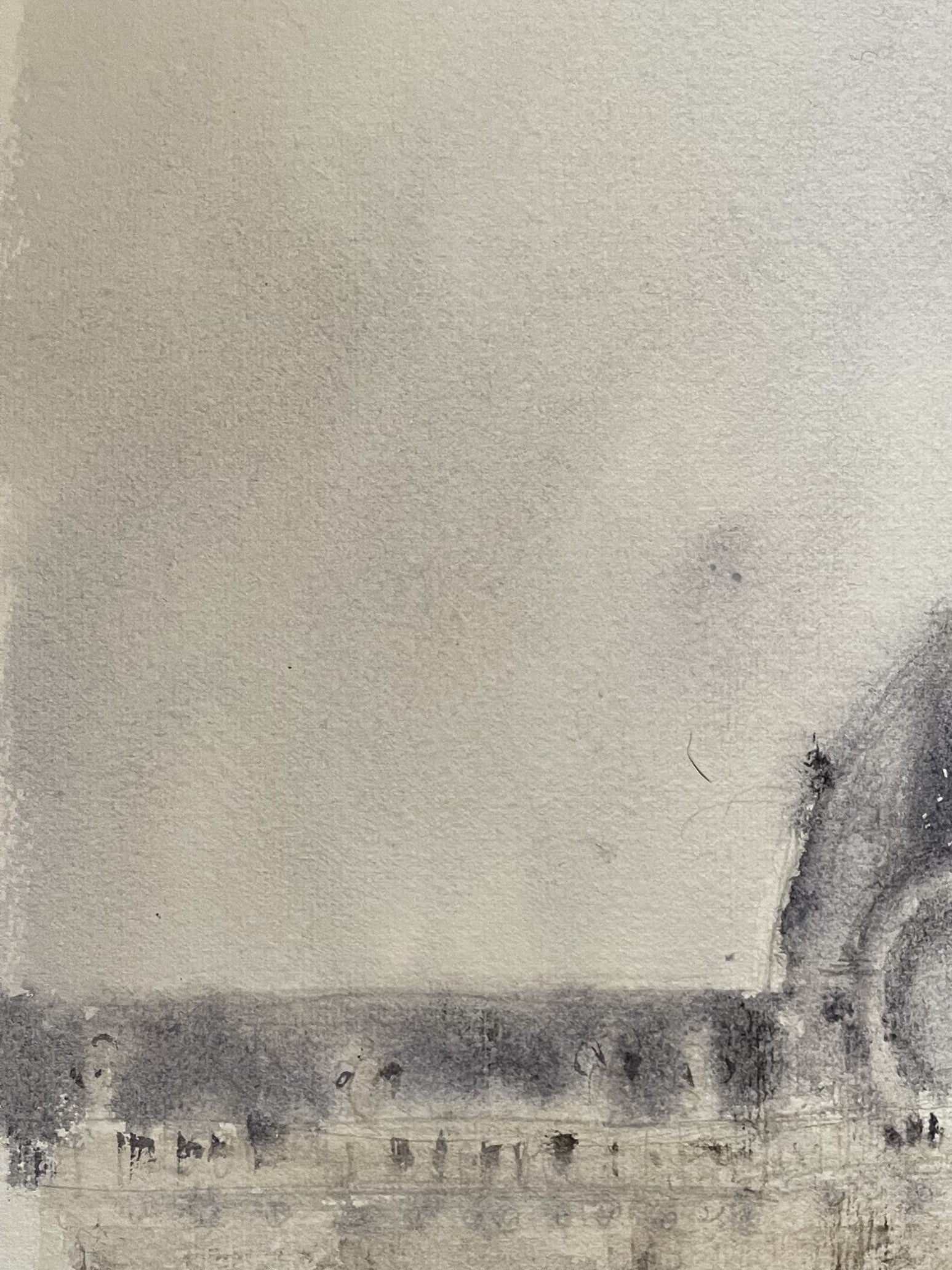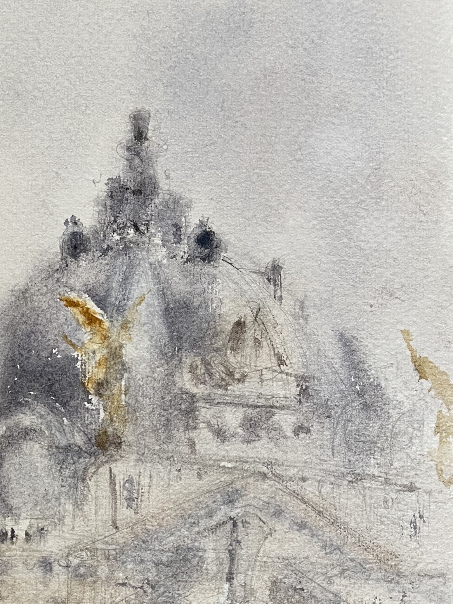“Veils of the Petit Palais” is a subtle and nuanced representation of the famous Parisian monument, seen through the veil of morning mist.