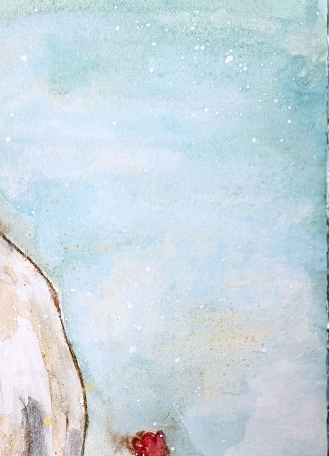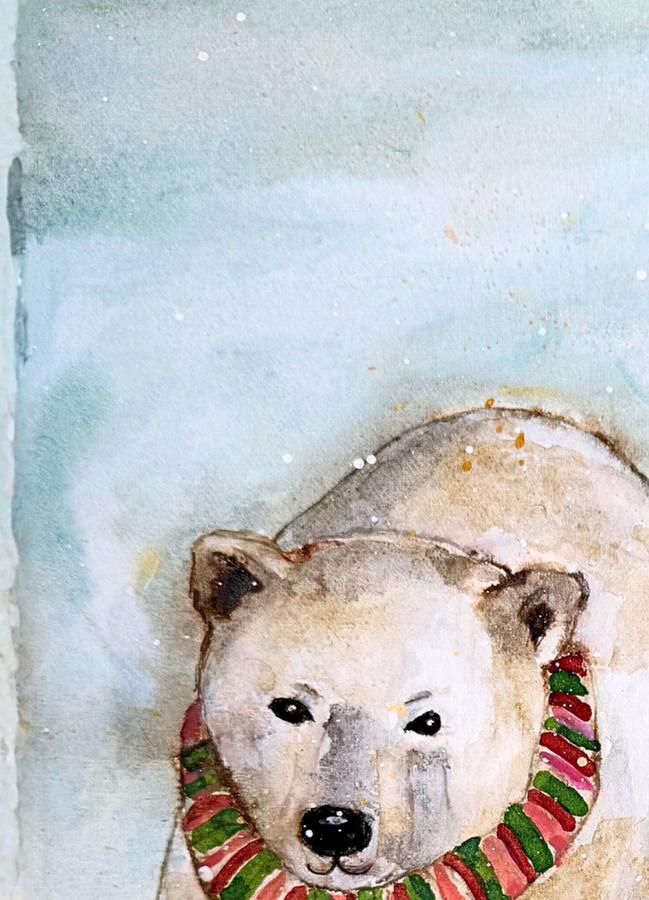 In this tenderly charming mixed-media watercolor painting, Panicha Thisanon captures the very essence of winter in an intimate scene between a polar bear mother and her cub. Their gentle, silent presence evokes the inner warmth that persists even amidst the frozen landscapes.