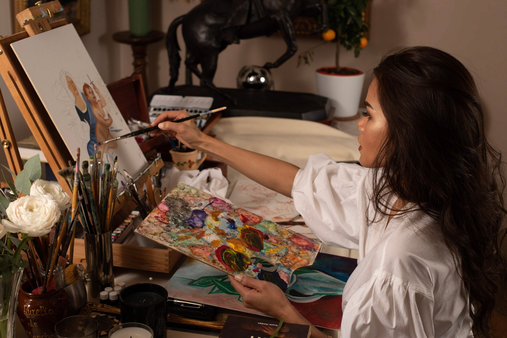 You and Panicha exchange by email what you envision, or even if you don't know, Panicha will help with refining your concept and imagining process. You can explain details that you would like to see in the painting, share some sources of inspiration, and then, with all this, Panicha will create a unique piece for you.