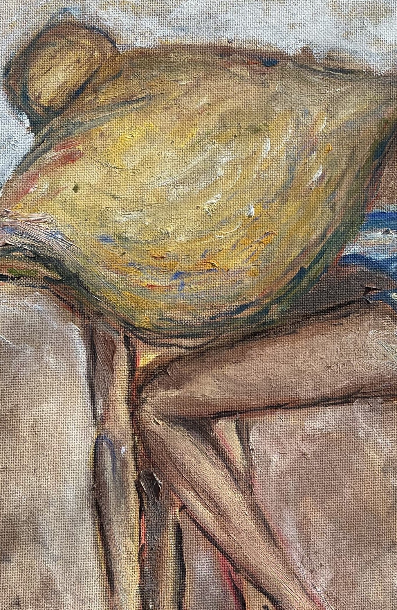 In “Elegant Break”, the canvas becomes the scene of a scene that is both everyday and timeless, where the natural elegance of the woman is revealed in the simplicity of a moment of rest.