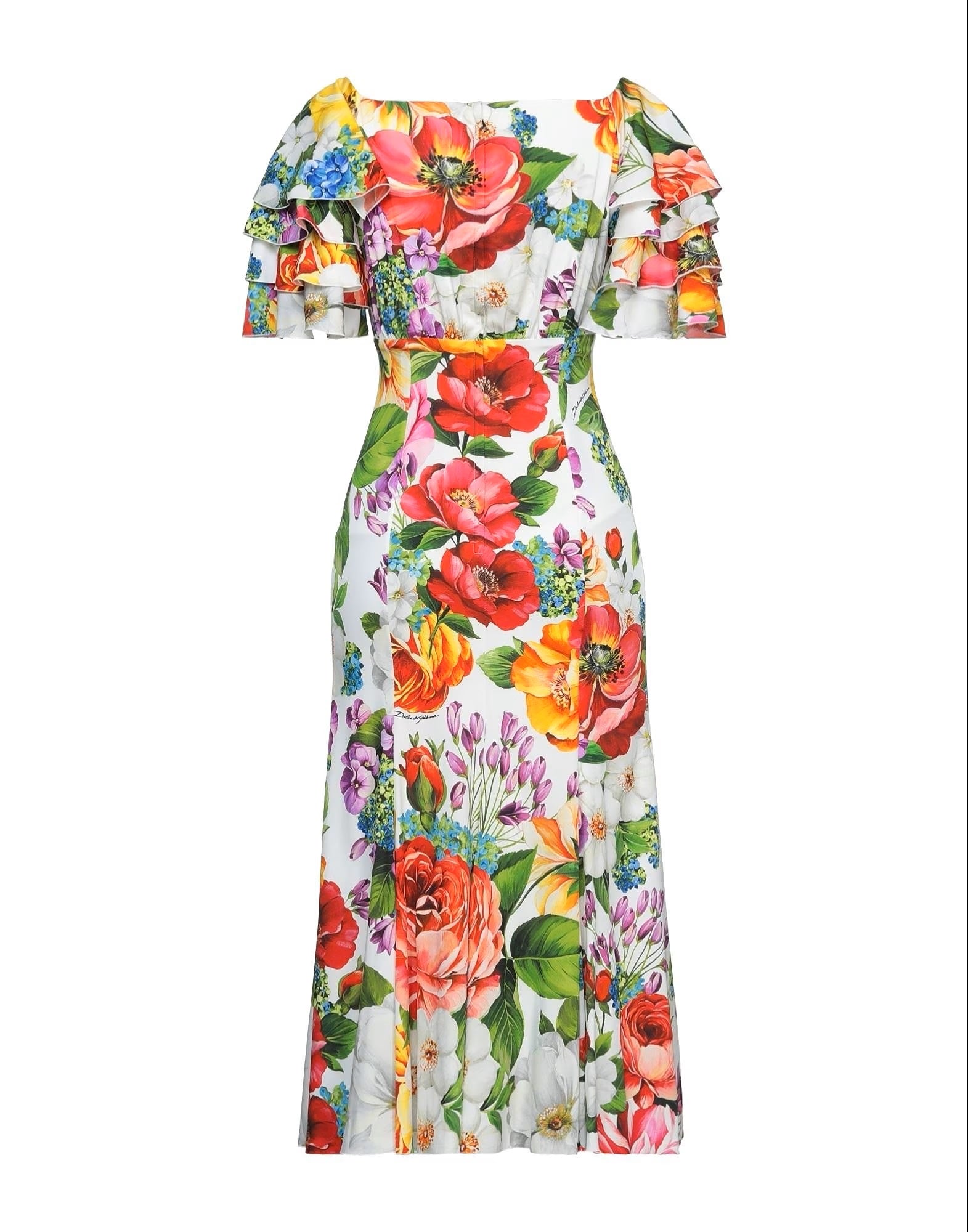 DOLCE & GABBANA WOMEN FLOWERS RUFFLES LONG DRESS